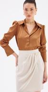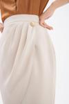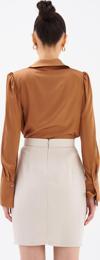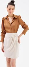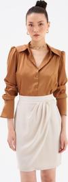Yüksek bel, arka fermuarlı kapama, gold süs düğmeli, astarlı, krep saten mini etek.
