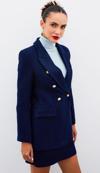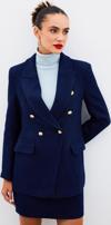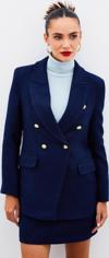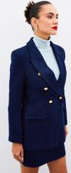 Kruvaze yaka, süs kapaklı cep, astarlı, omuz ince vatkalı, gold düğme detaylı, uzun tüvit ceket.