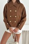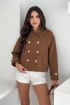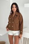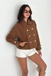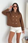 Düğme Detaylı Yağmur Gabardin Ceket Kahverengi