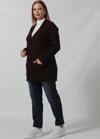 fresh&moda Kadın Siyah Yakalı Düğmeli Cepli Kuşaklı Örme Triko Yün Uzun Hırka