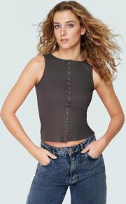Gri rengi ile her gardırobun vazgeçilmezi olacak bu bluz, her mevsimde giyilebilecek kadar çok yönlü. Yumuşak dokusu ve rahat kalıbıyla gün boyu kendinizi iyi hissedeceksiniz. Önündeki düğmeler ile stilinize ayrı bir hava katarken, asimetrik kesimi ile tarzınızı yansıtabilirsiniz.