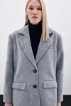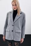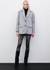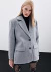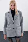 Kruvaze yaka,, düz ve uzun kol, kapaklı süs cep, iç astarlı, ön düğmeli kaşe ceket.