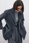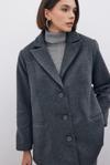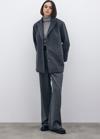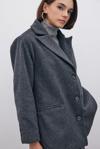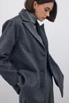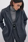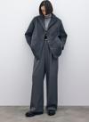 Kruvaze yaka, ön düğmeli kapama, iç astarlı, arka mini yırtmaçlı, vatkalı, süs düğmeli düz kol, oversize kaşe kaban.