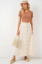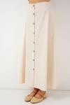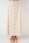 Düğmeli Keten Uzun Etek 8046 - Krem