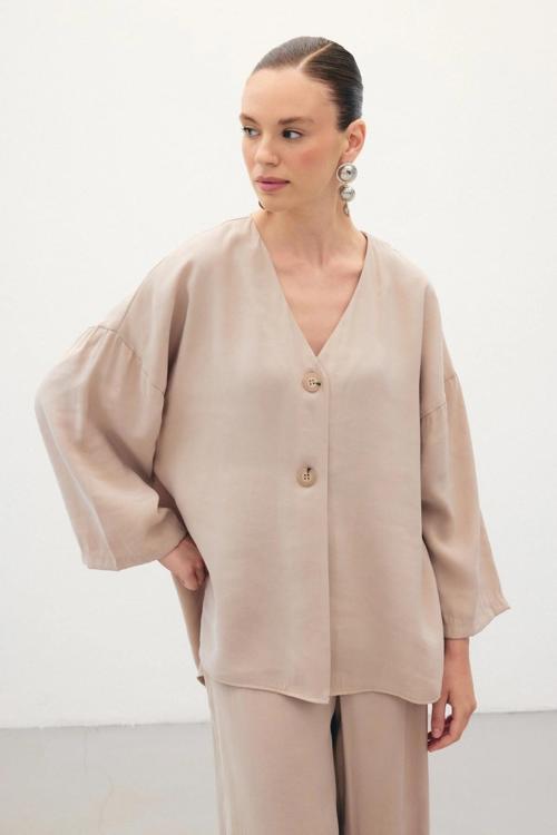 Düğmeli Kimono - Taş