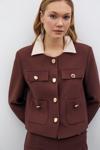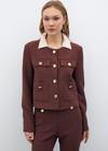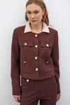 Bisiklet yaka, cep detaylı, düz uzun kol, gold düğmeli kısa ceket.