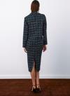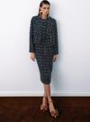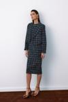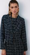 Kruvaze, düz uzun kol, vatkalı, iç astarlı, düğmeli kırçıllı kısa tüvit ceket.