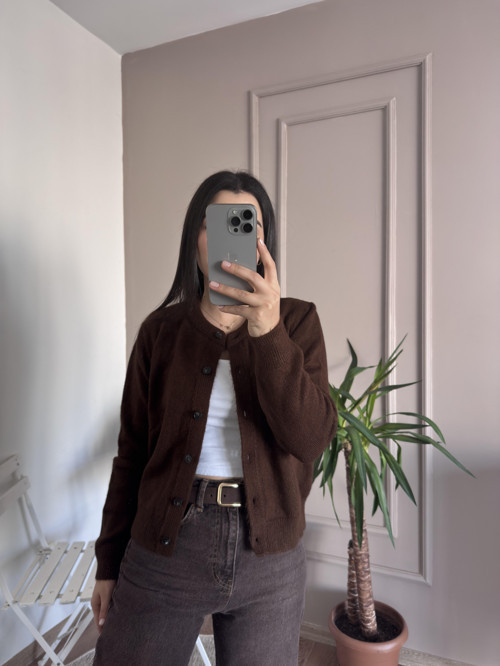 Düğmeli Yumoş Kahverengi Triko Hırka