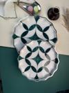 Yeşil mermer desenli yaprak formlarıyla bezeli yüzeyi, beyaz zemin üzerinde zarif bir kontrast yaratırken; parlak gümüş kenar detayları 🪞 bu seti adeta bir sanat eserine dönüştürüyor.