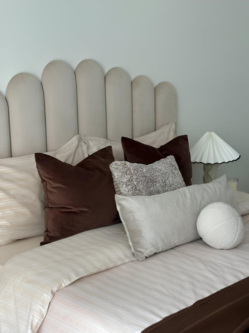 Dukduk Store'un şıklığı ve konforu bir araya getiren döşemeli yatak başlığı, yatak odanıza zarif bir dokunuş katıyor.