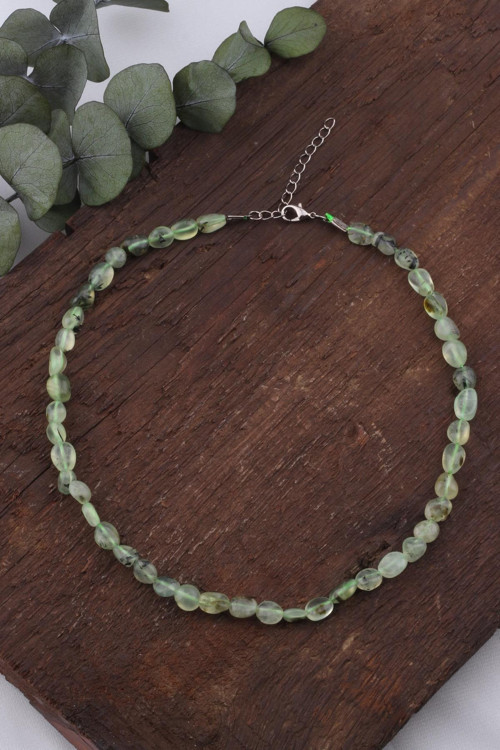 Doğal prinayt ( prehnit ) taşı kolye ortalama aparat dahil 48-50 CM uzunluğundadır.