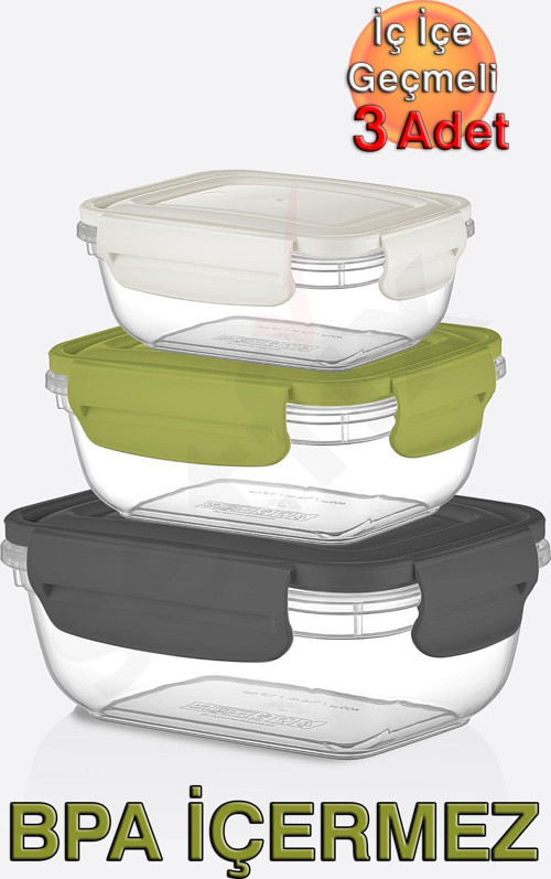 - Üçlü set halinde sunulan bu saklama kapları, iç içe geçerek mutfağınızda az yer kaplar.