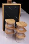Duo 400 ml 6’lı Cam Kahvaltılık Seti – Vakumlu Bambu Kapaklı – Siyah Mermer Desen Tepsili