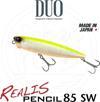 DUO markasının, 5 kıtada birden yaygın bir şekilde kullanılan ve su üstü sahte segmentindeki amiral gemisi Realis Pencil 85, ülkemizde de çok kısa bir zamanda levrek ve kofana avcılarının favori sahtesi oldu.