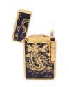 Dupont Tarzı Mum Alev Çakmak Ejder Gravür Desen - Siyah/Altın Rengi
