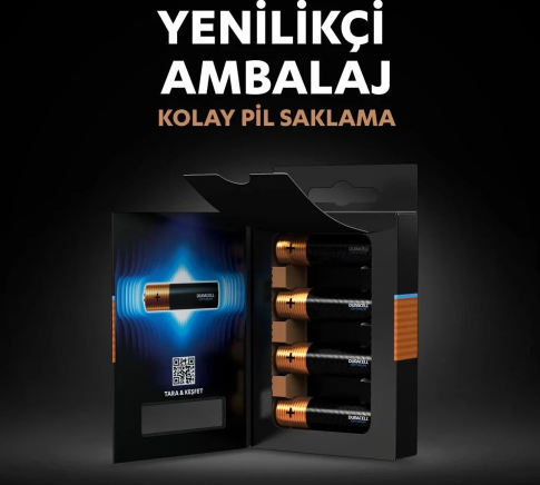 Duracell Optimum'un yeni ve yenilikçi "kitap" şeklindeki ambalajı açılıp kapanır bir kapıya ve iç kısımda düzenleyici bir tepsiye sahip. Bu da pillerin artık mutfak çekmecesi içinde yuvarlanmayacağı anlamına geliyor! Bunun yerine pilleriniz, siz onları kullanmaya hazır olana kadar rahat ve güvenli bir şekilde saklanıyor. Ve piller bittiğinde, onları geri dönüştürülmeye hazır olarak saklayabiliyorsunuz.