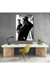 Dürbün Tutan Atatürk Görseli Kanvas Tablo Siyah Beyaz Atatürk Görseli Dikey Tablo