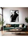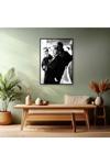 Artarilion Dürbün Tutan Atatürk Görseli Metal Çerçeveli Cam Tablo Siyah Beyaz Atatürk Görseli Dikey Tablo