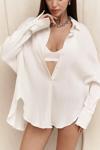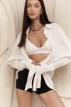 Oversize kalıp, yakalı ve manşetli, uzun kollu, önü düğmeli, etek ucu yuvarlak, arkası biraz daha uzun.