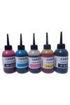PAKET İÇERİĞİ : 5 RENK X 100 ml CANON UYUMLU DOLUM MÜREKKEP SETİ SİYAH, KIRMIZI, MAVİ, SARI, PGBK 5 ADET ENJEKTÖR (ŞIRINGA) 1 ÇİFT ŞEFFAF ELDİVEN 1 ADET ISLAK MENDİL 1 ADET 30ML KARTUŞ TEMİZLEME SOLÜSYONU 1 ADET 50X50CM ÇİFT KATLI SIVI GEÇİRMEZ MASA ÖRTÜSÜ