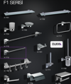 Modern hatlarıyla Duxxa aksesuar serisinin en beğenilen modellerinden olan F1 serisi geniş ürün çeşidiyle her banyonun ihtiyacına cevap verir.