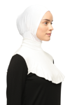 Loggia Fırfırlı Önden Dikişli Penye Bone - Kadın Tesettür Bağlamalı Topuz İç Bone-Ekru - Kırık Beyaz