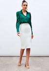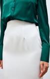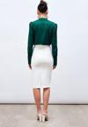 Yüksek bel, arka fermuarlı kapama, yırtmaçlı kalem etek.
