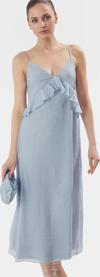 Bu rahat ve şık mavi elbiseyle yaz aylarının keyfini çıkarın! 100% Polyester Crinckle Organze kumaştan üretilen elbise, nefes alabilir ve hafif yapısıyla gün boyu konfor sunar. V yakası ve fırfırlı detayı, elbiseye feminen bir dokunuş katarken, düz kesimi ve Shift kalıbıyla her vücut tipine mükemmel uyum sağlar. Astarlı yapısı, şık görünümünüzü korurken rahatlığı da sağlar. 130 cm boyuyla, sizi olduğunuzdan daha uzun ve ince gösterir.