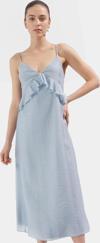 Elbisenin yüksek kaliteli Crinckle Organze kumaşı, dayanıklı ve uzun ömürlü kullanım sağlar. Nefes alabilen yapısı, sıcak yaz günlerinde bile serin ve rahat kalmanıza yardımcı olur. V yakası ve fırfırlı detayı, elbiseye zarif bir görünüm kazandırır ve her ortamda dikkat çekmenizi sağlar. Astarlı tasarımı, gün boyu rahat ve özgüvenli hissetmenizi sağlar. Düz kesim ve Shift silueti ile vücut tipinize mükemmel bir uyum sağlar, her zaman mükemmel görünmenizi sağlar.