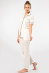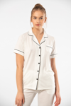 Düz Kısa Kollu Gömlek Yaka Piama Takım 3368 Ekru 3368/Ekru
