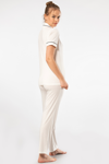 Ersefa Tarz Rahat Kısa Kollu Boru Paça Düz Nakışlı Kaşkorse Örme Pijama Takımı