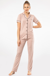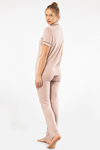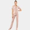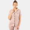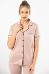 Gömlek yaka cep detaylı düğmeli kısa kollu düz pijama takımı. Rahat kalıp, nefes alan kumaş.