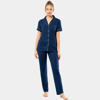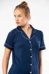 Gömlek yaka cep detaylı düğmeli kısa kollu düz pijama takımı. Rahat kalıp, nefes alan kumaş.