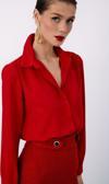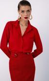 Ön düğme ilikleme, uzun kol, uzun klasik şifon gömlek.