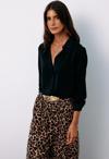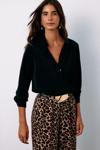 Ön düğme ilikleme, uzun kol, uzun klasik şifon gömlek.