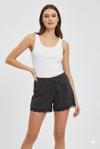 Düz Renk Mini Çiçek Desenli Penye Kadın Ev Şortu Bacak Dantel Detaylı Ev Giyim Siyah