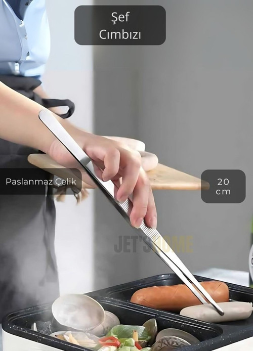 ÜrünAçıklaması:Mutfakta hassasiyet ve pratiklik arayanlar için ideal bir araç olan şefcımbızı, profesyonel ve amatör şeflerin vazgeçilmez yardımcısıdır. 304paslanmaz çelikten imal edilen bu cımbızlar, pas ve ısı direncinesahip olup, dayanıklı ve uzun ömürlüdür. 20 cm uzunluğundaki düz tasarımıile yemek hazırlığında ve tabak dekorasyonunda mükemmel sonuçlar elde etmenizisağlar.
