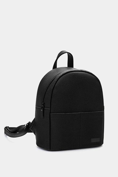 Geri dönüştürülmüş materyaller kullanılarak üretilmiş, çevre dostu bir seçenek olan siyah mini kadın sırt çantası, sürdürülebilir moda anlayışını benimseyenler için idealdir.