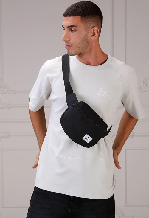 Günlük kullanım için ideal, şık ve fonksiyonel tasarımıyla dikkat çeken siyah tek bölmeli omuz ve bel çantası.