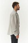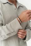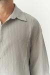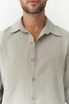Modal karışımlı kumaştan, oversize gömlek. İtalyan yaka ve düğmeli manşetli, uzun kollu. Önü düğmeli. Pis şerit detay ve çizgili tasarım.