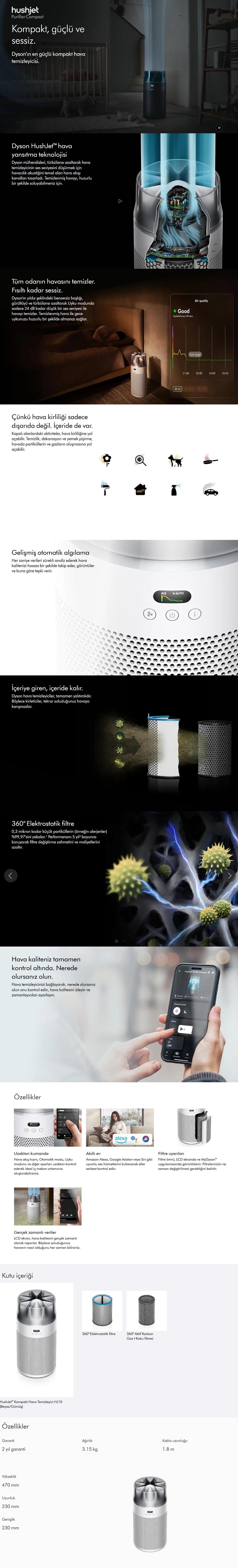Dyson Hushjet Purifier Compact Beyaz Gümüş Hava Temizleyici