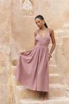 MAI STUDIOS CO. Eara Askılı Açık Bordo Uzun Keten Elbise