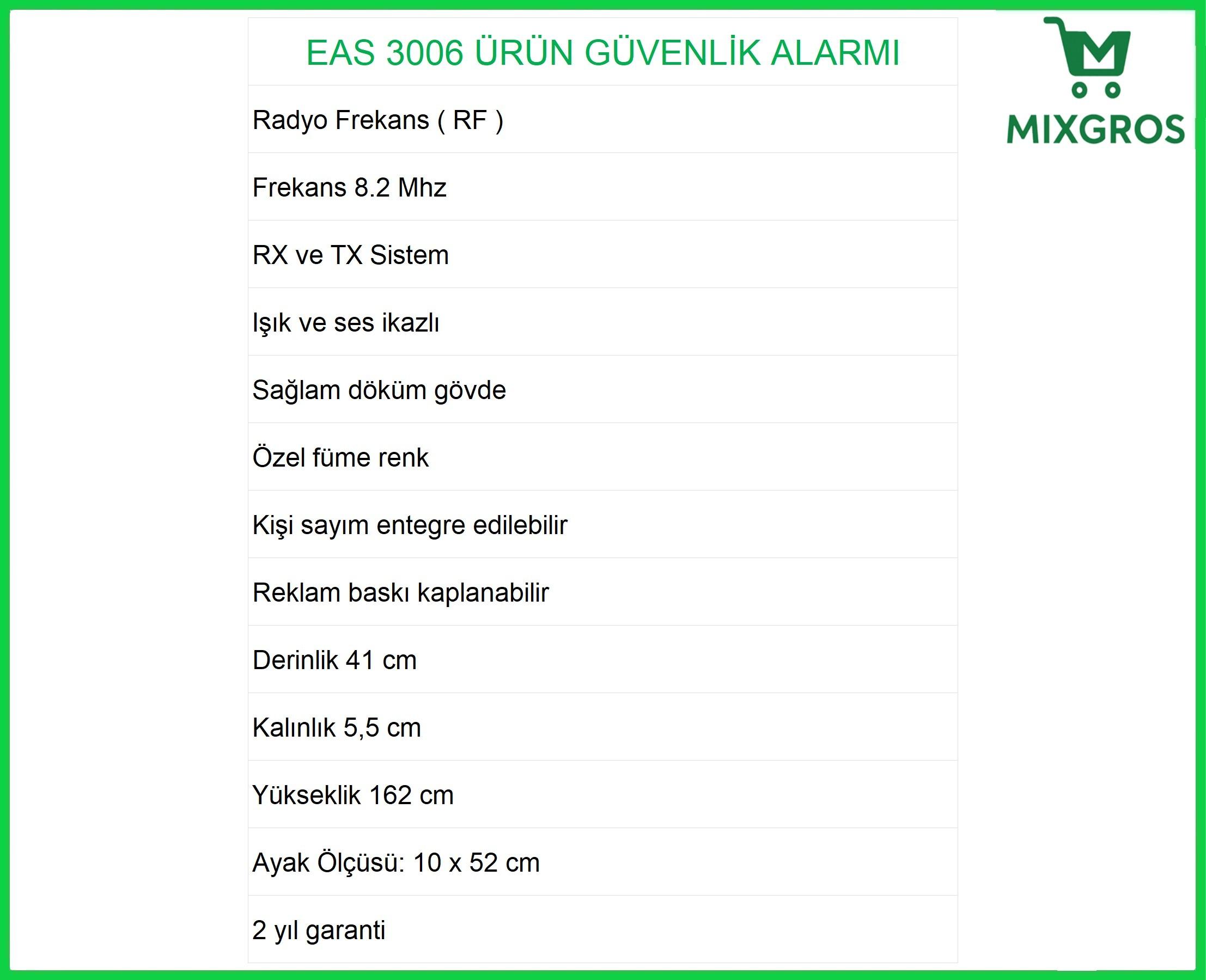 Secadoor EAS 3006 Mağaza Ürün Güvenlik Alarm Sisteminin özellikleri ve açıklamaları aşağıda verilmiştir. Farklı model seçenekleri ve daha fazla bilgiyi müşteri hizmetlerimizden alabilirsiniz.