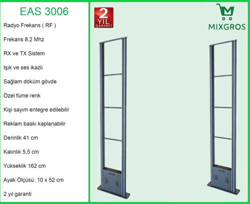 Secadoor EAS 3006 mağaza hırsız ürün güvenlik sistemi, özellikle süpermarketler için tasarlanmıştır. Döküm gövdeden üretilmiştir. Secadoor EAS 3006 ürün güvenlik sistemi, sağlam ve dayanıklı gövdeden üretilmiş bir ürün güvenlik anteni... RX ve TX olarak takım olarak sunulmaktadır. Oluşturulan koridorlardan geçen 8,2 Mhz alarm etiketlerini algılayarak alarm vermektedir. Antenler arası koridorların genişliği ve alarm etiketlerini yakalama performansı, kullanılan alarm etiketlerinin büyüklüğü ya da küçüklüğü ile doğru orantılıdır. Alarm etiketleri ne kadar büyük ise yakalama performansı daha etkili olacaktır ve de antenler arası koridorların daha geniş tutulmasına imkân sağlayacaktır. Özellikle market, süpermarket, hipermarket ve yapı market vb. alışverişin yoğun olduğu, market arabalarının sıklıkla kullanıldığı alanlarda, EAS 3006 darbelere karşı oldukça dayanıklıdır. Bu konuda da iddialı yapısı ile adından sıkça bahsettirmektedir. Sizlerin de mağazanızda bulunan ürün güvenlik antenlerinin kırılması, yıkılması vb. gibi sorunlar ile karşılaşmak istemiyorsanız, EAS 3006 ürün güvenlik antenlerini kurun, rahat edin... Gözünüz arkada kalmasın...​