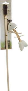 40 cm sap uzunluğuna, 55 cm elastik ip ucunda çıngırak ve balık şeklinde peluş bulunan kedi oltası.