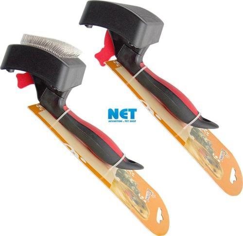 9x6 cm ebatlarında toplanan tüylerin tek bir tuşla kolayca temizliğinin sağlanabildiği tarak ağzına ve 12 cm sap uzunluğa sahip otomatik tarak.