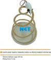 15 cm çapında tahta dan, kumaş ve hasır kaplı taban üzerinde kumaş kaplı yay üzerine konumlandırılmış, peluş fareli toplam 22 cm yüksekliğinde kedi oyuncağı