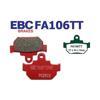 EBC Brakes TT fren balataları, cadde veya yol dışı kullanım için uygundur. Orta ömür ve soğuk bir disk frenleme sıcaklığı sağlamak için emprenye edilmiş hibrit karbondan üretilirler.
