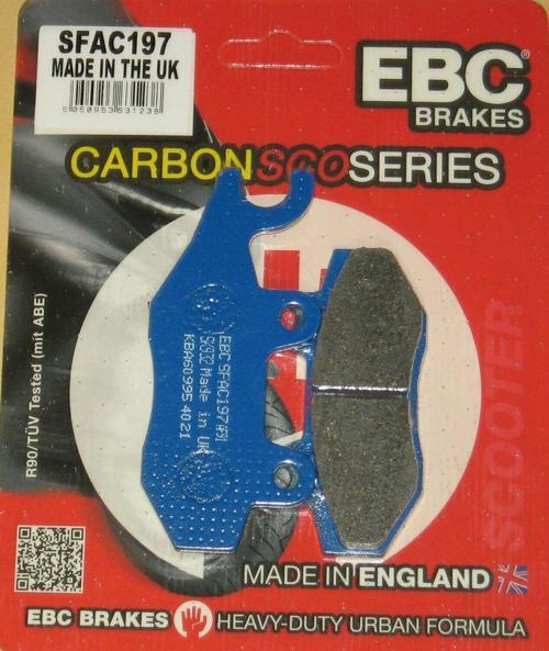 EBC SFAC scooter fren balataları, karbon granülleri ile ağırlıkça %30 bakır tozu kullanılarak İngiltere (UK) de üretimi yapılır. Orijinal balatalardan daha uzun bir kullanım ömrü sağlarlar, ayrıca mükemmel fren etkisi ve neredeyse hiç disk hasarı yoktur. Bu bileşik, daha hızlı sokak kullanımı için daha büyük motorlu tüm ağır scooterlarda kullanıma uygundur ve herhangi bir fren diski malzemesiyle kullanım için mükemmeldir.