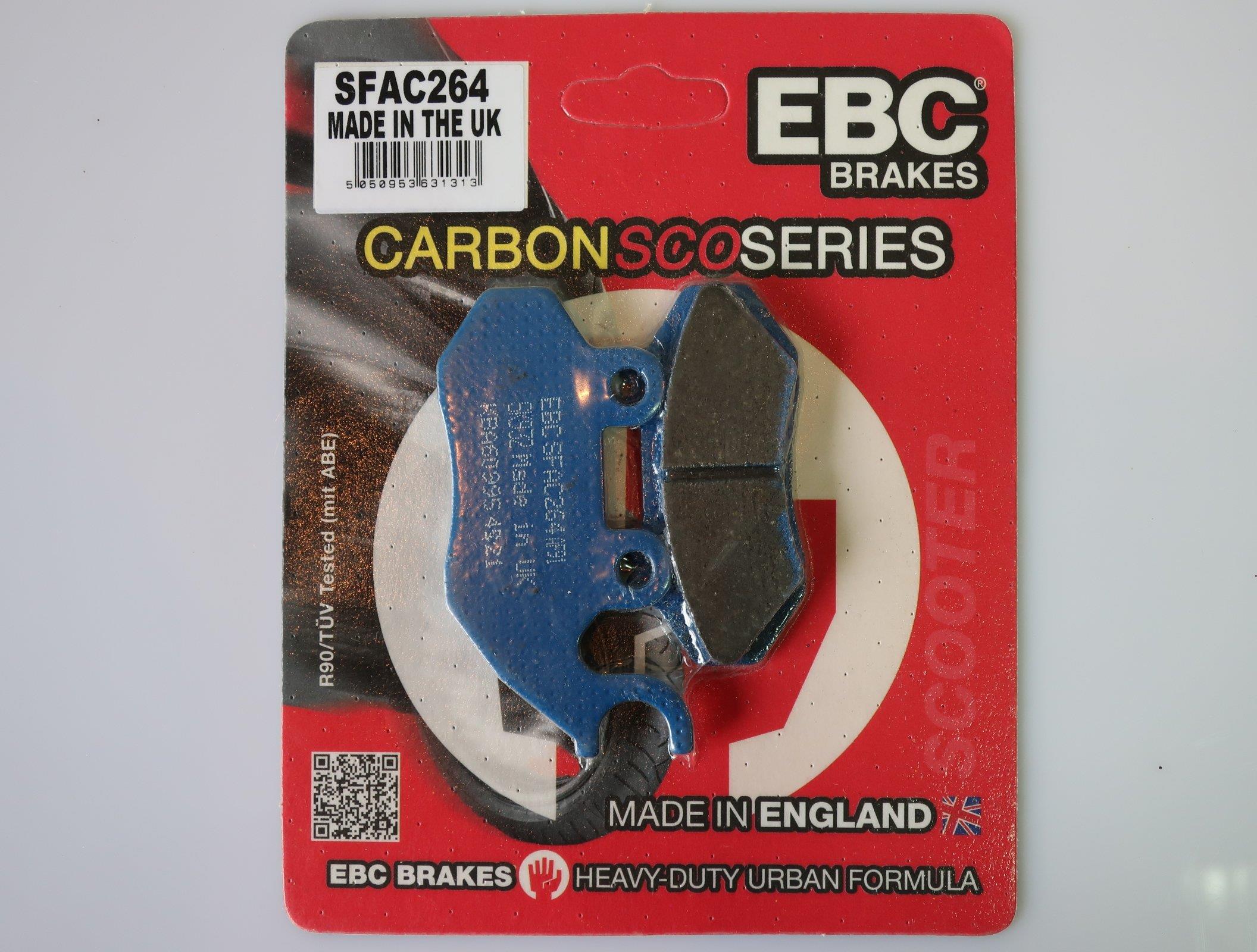 EBC SFAC scooter fren balataları, karbon granülleri ile ağırlıkça %30 bakır tozu kullanılarak İngiltere (UK) de üretimi yapılır. Orijinal balatalardan daha uzun bir kullanım ömrü sağlarlar, ayrıca mükemmel fren etkisi ve neredeyse hiç disk hasarı yoktur. Bu bileşik, daha hızlı sokak kullanımı için daha büyük motorlu tüm ağır scooterlarda kullanıma uygundur ve herhangi bir fren diski malzemesiyle kullanım için mükemmeldir.